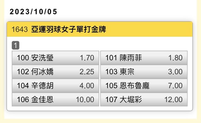 2023 Asian Games badminton women's singles https://i.imgur.com/QBFUpl5.jpg