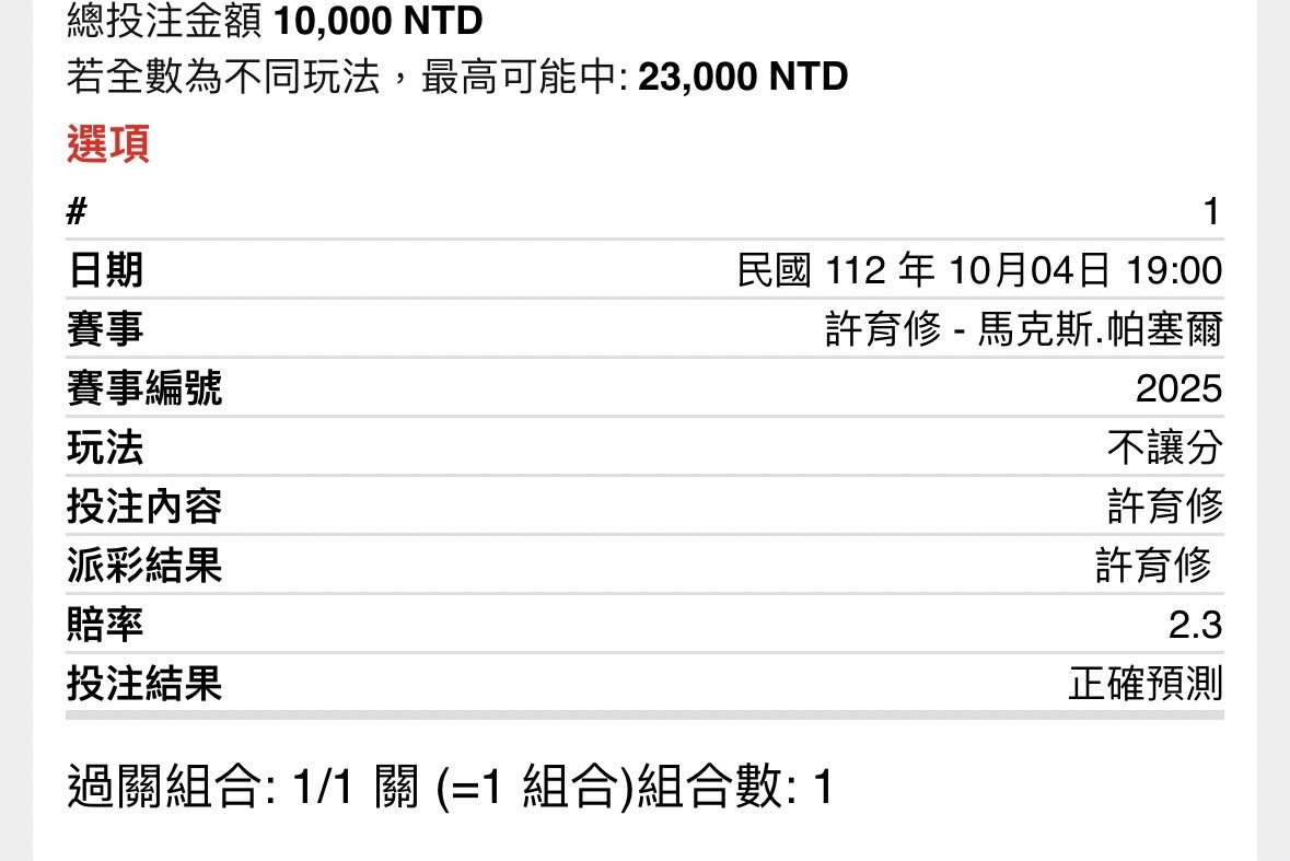 推 MambaKiller: 反向開小分,恭喜許育修 114.136.49.193 10/06 16:36