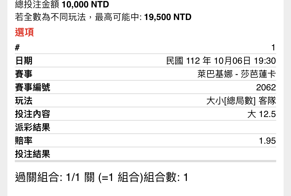 → srtt123: 第一盤萊巴收111.240.208.130 10/06 20:37
