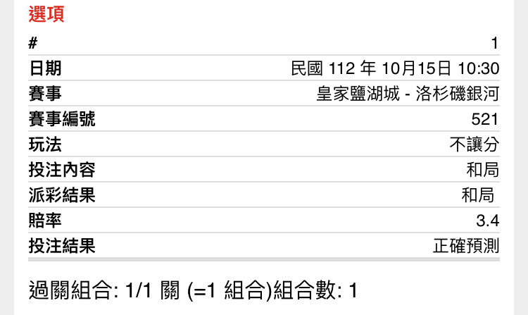 → nashieh: 早知道應該串賽前2.5大才對 125.231.239.52 10/15 11:14