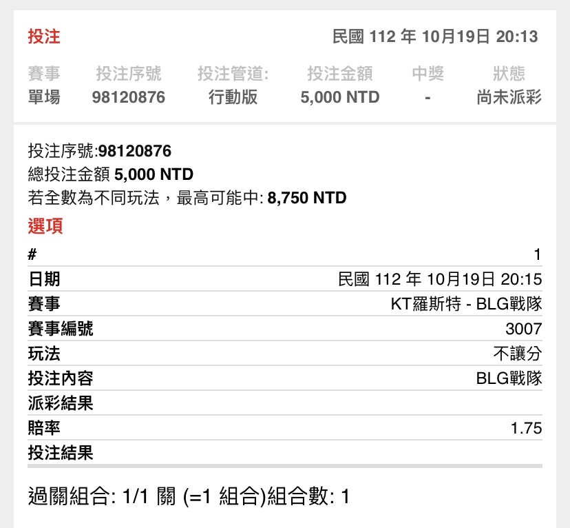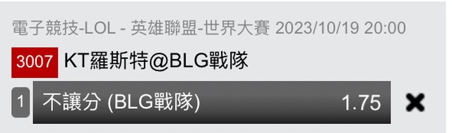 瑞士制每天比賽好多xd 今天超忙來推個尾場 20:00 KT@BLG 這場BLG藍方 目前藍方幾乎全勝 給中國藍方還開平盤是有點看不懂 KT是韓國#3、BLG是中國#2 嗶哩沒道理會輸吧? 總之應該是場很好看的比賽 可惜還是不開遊戲時間大小 第一輪而已也沒什麼好參考 中韓對決就是 #相信藍方 推 BLG PK 1.75 https://i.imgur.com/KilOadJ.jpg