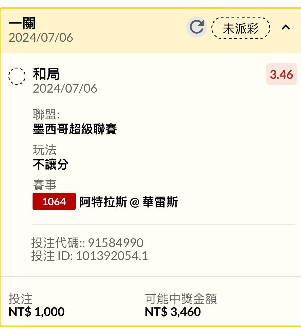 推 WindSuan: 感覺和局,還好我買單隊2+沒買PK 101.8.31.136 07/06 13:02