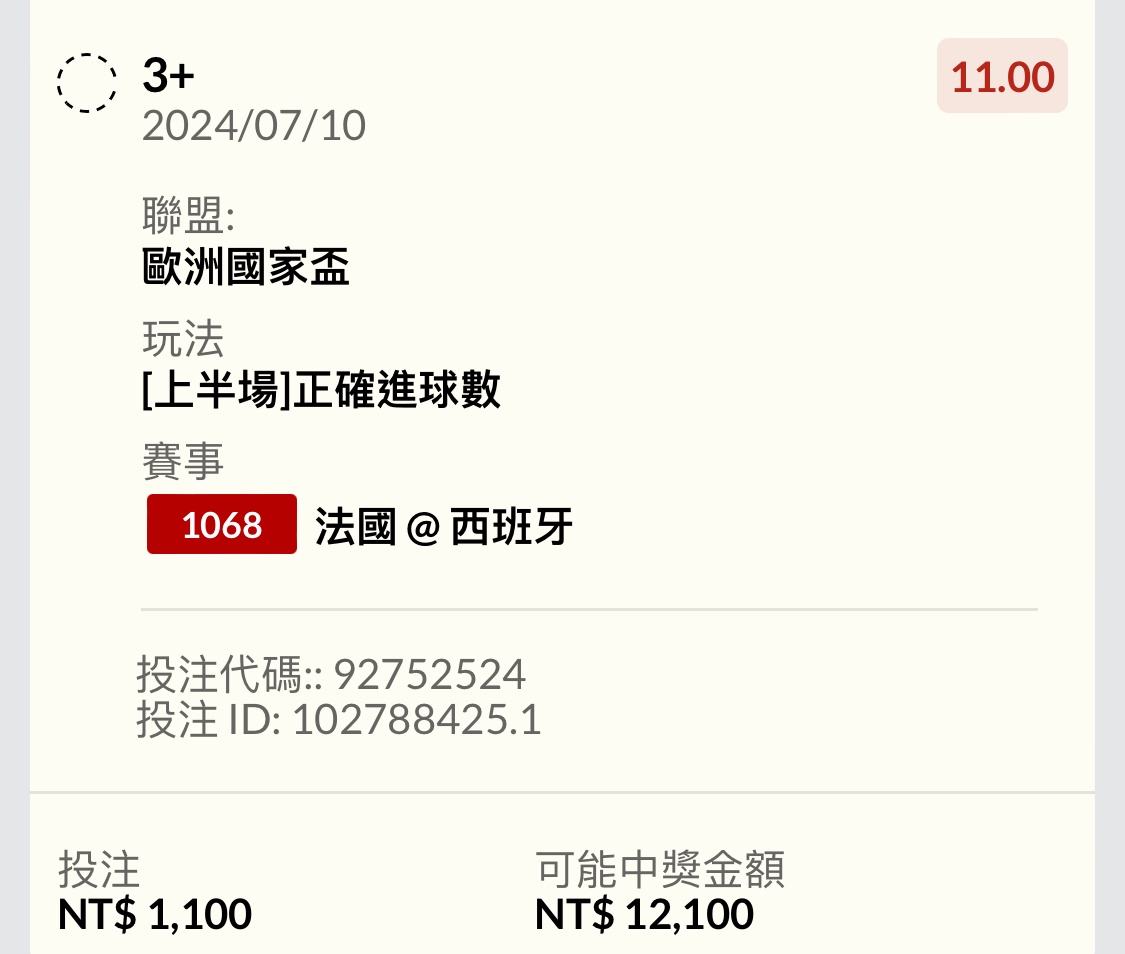 推 nick999: 聽牌啦 西班牙快一點 114.37.224.54 07/10 03:09
