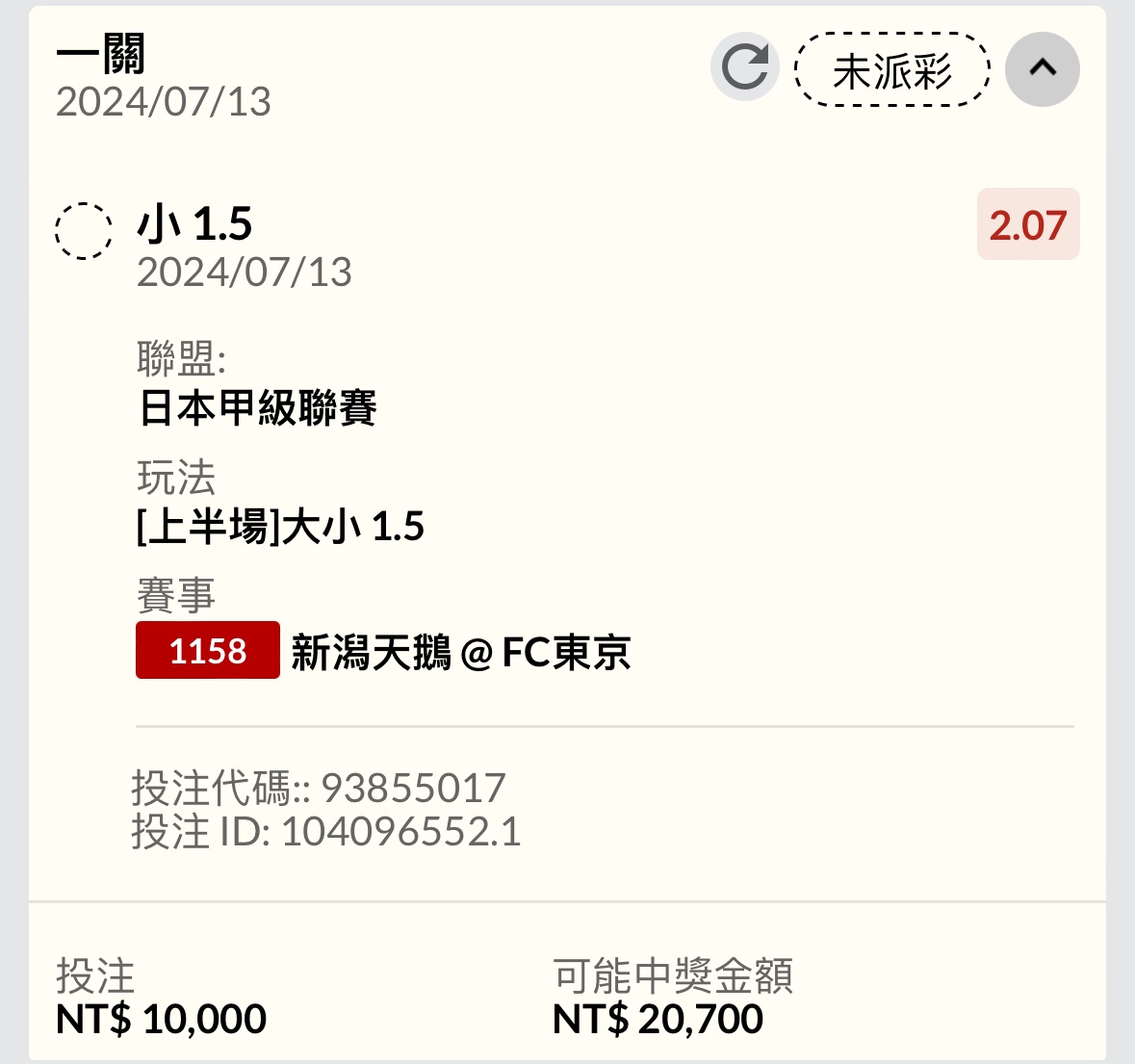 → westlml: 上1.5小收 1.200.90.23 07/13 18:51