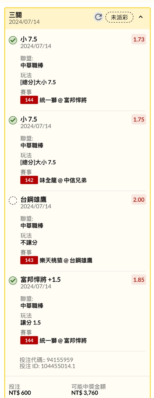 → p369369963: 三場大分應該都買了 111.71.52.104 07/14 19:15