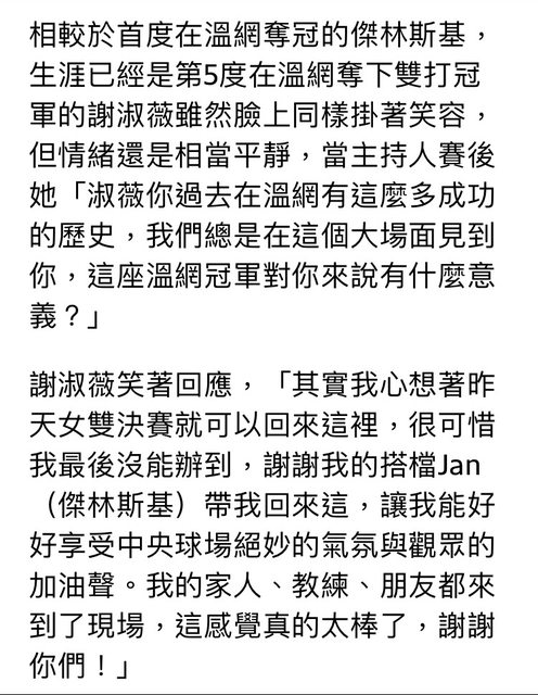 推 furious1320: 謝謝淑薇,謝謝Zielinski 114.24.76.243 07/15 08:34