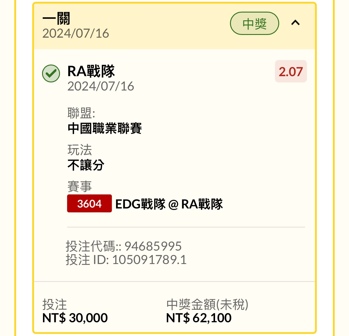 → PTTaga: 昨天最扯真的超高賠開出 101.9.131.67 07/16 19:33