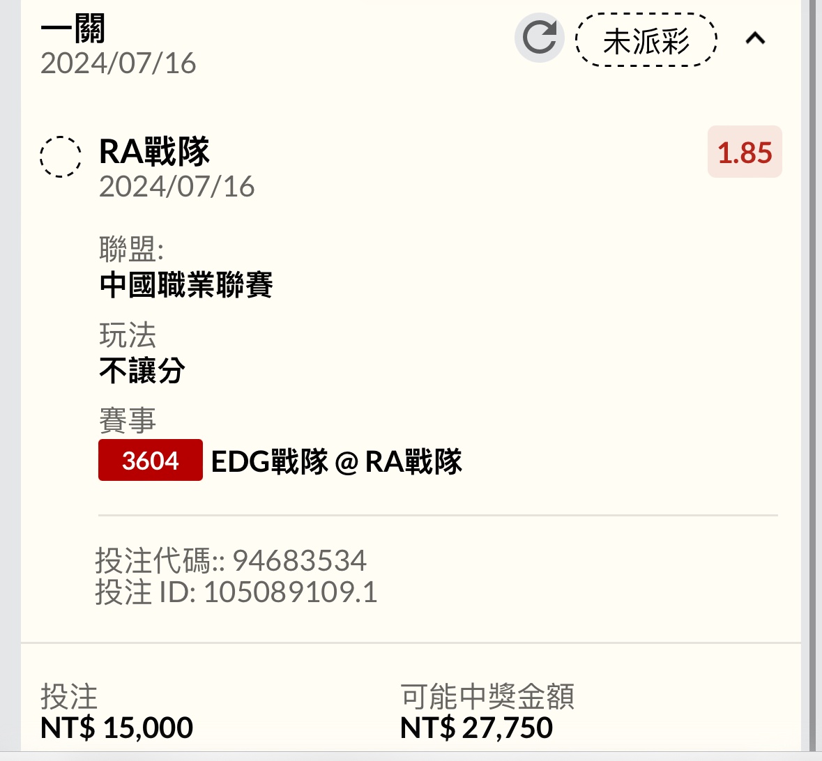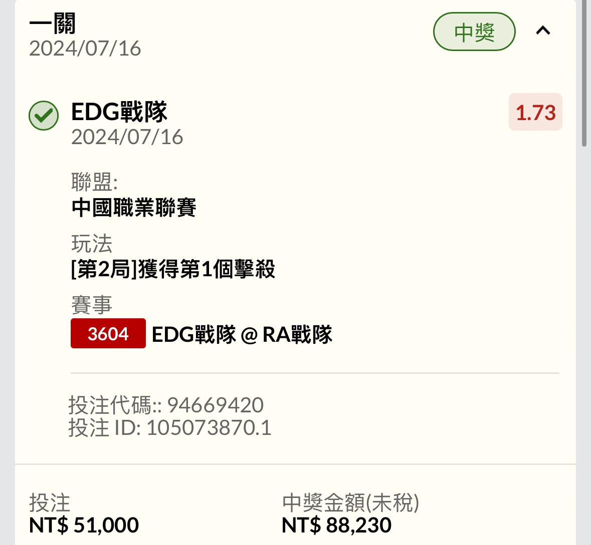→ Circlekid: 有時候等不到賠率真的寧願不買,低賠被 1.161.126.64 07/16 18:03