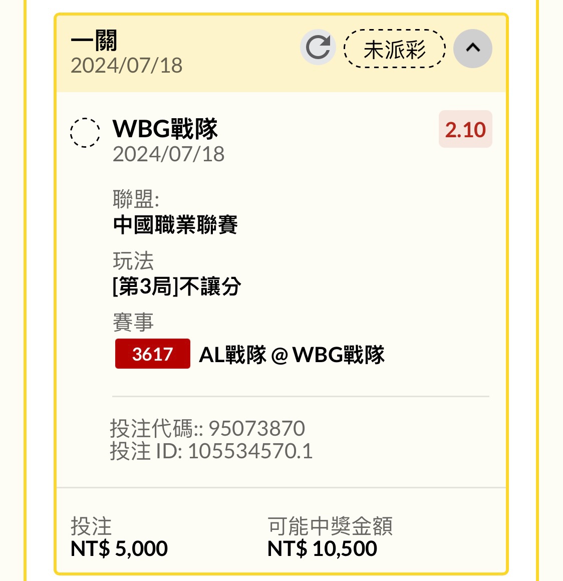 推 Taiwan007: WBG首殺1.85買了5000 42.77.188.156 07/18 18:53