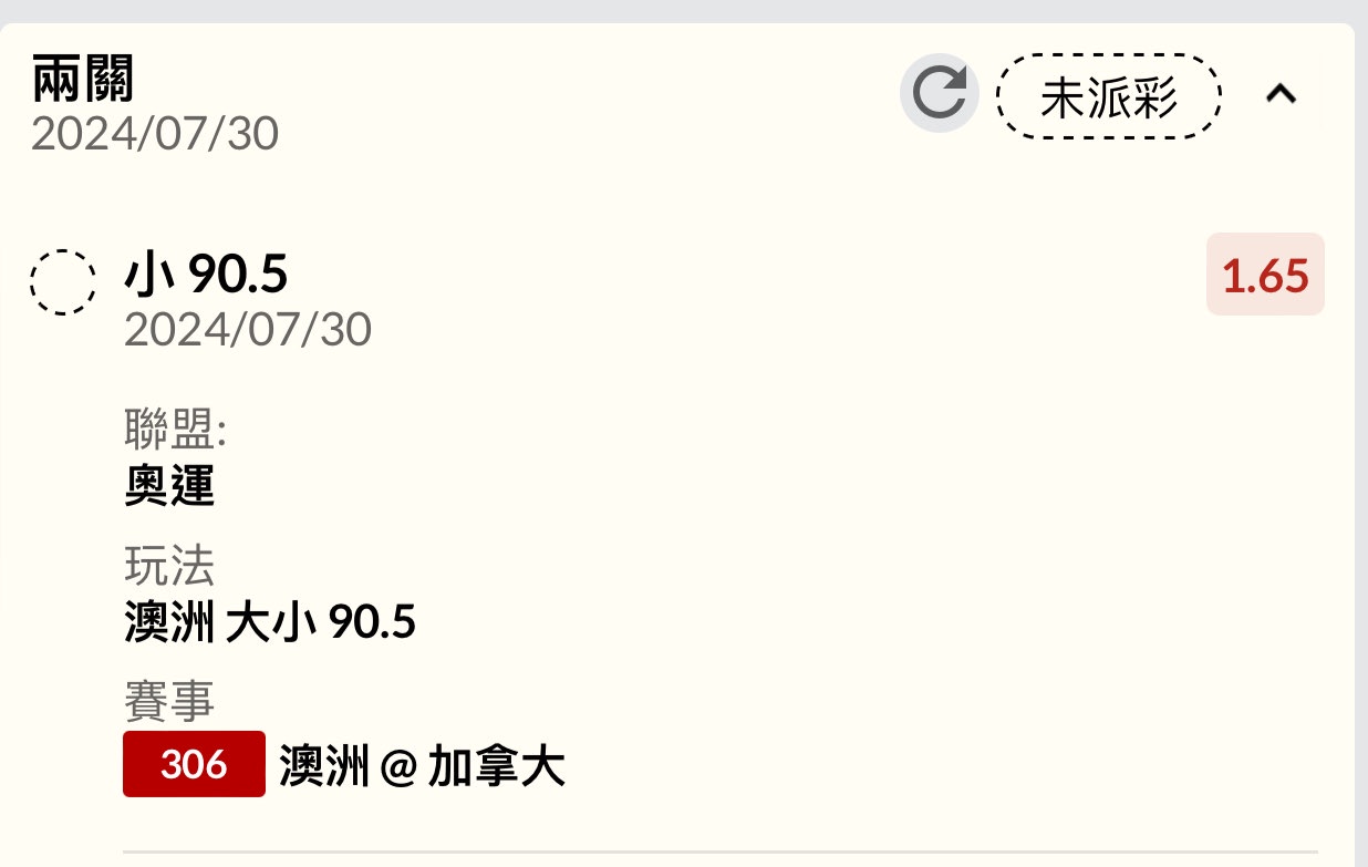 → sean910587: 1.66/1.66,什麼垃圾賠率 42.72.160.190 07/30 19:35