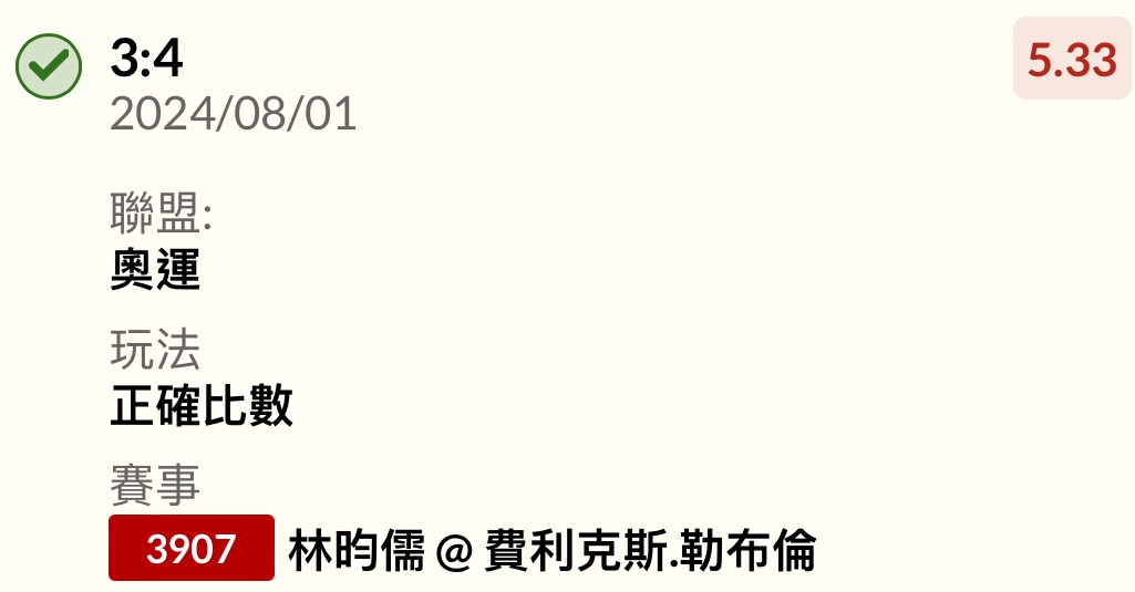 → cool34: 樓上好強 猜中正確比數 180.176.111.30 08/01 22:33