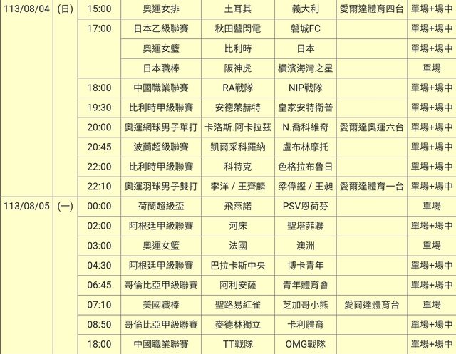 標題[官方] 113-08-04 單場場中