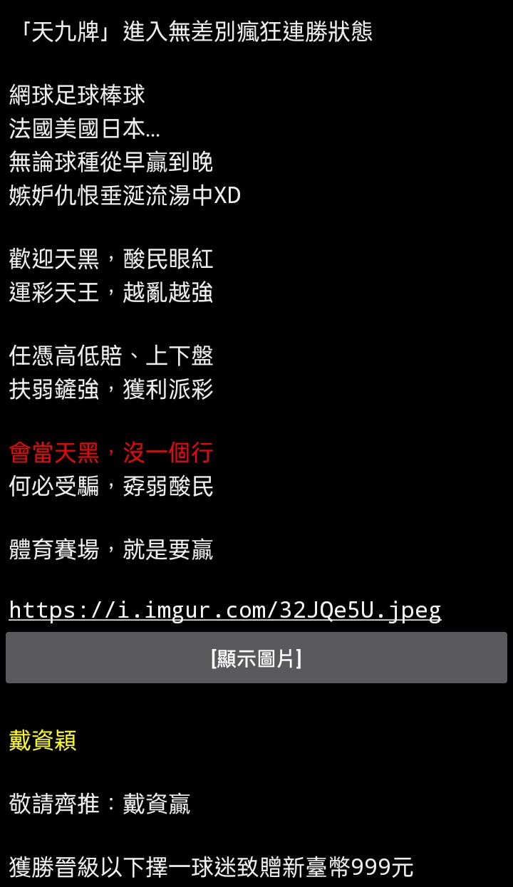 → feen5432: 運彩天繩 輸到脫褲 101.9.200.98 08/07 14:56