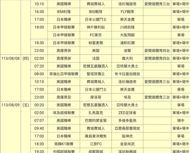 標題[官方] 113-08-08單場場中