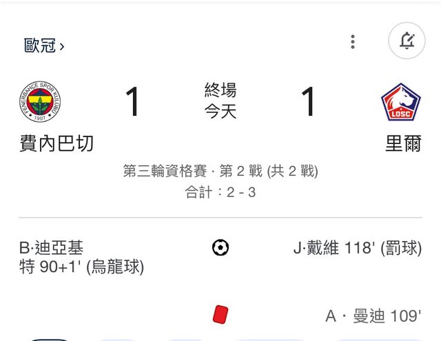 推 LysD7777: 正規賽時間是0:1 里爾是加時進的180.177.14.136 08/14 09:06