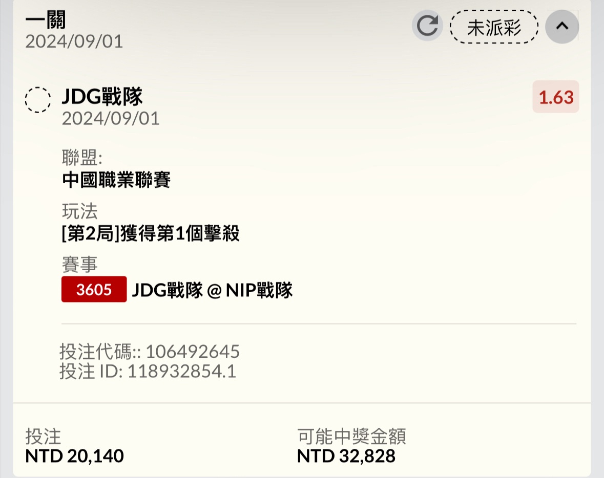 → heybi: JDG 打回一點 剛剛看賠率 -1.5 3.80 XD 123.241.97.214 09/01 20:10
