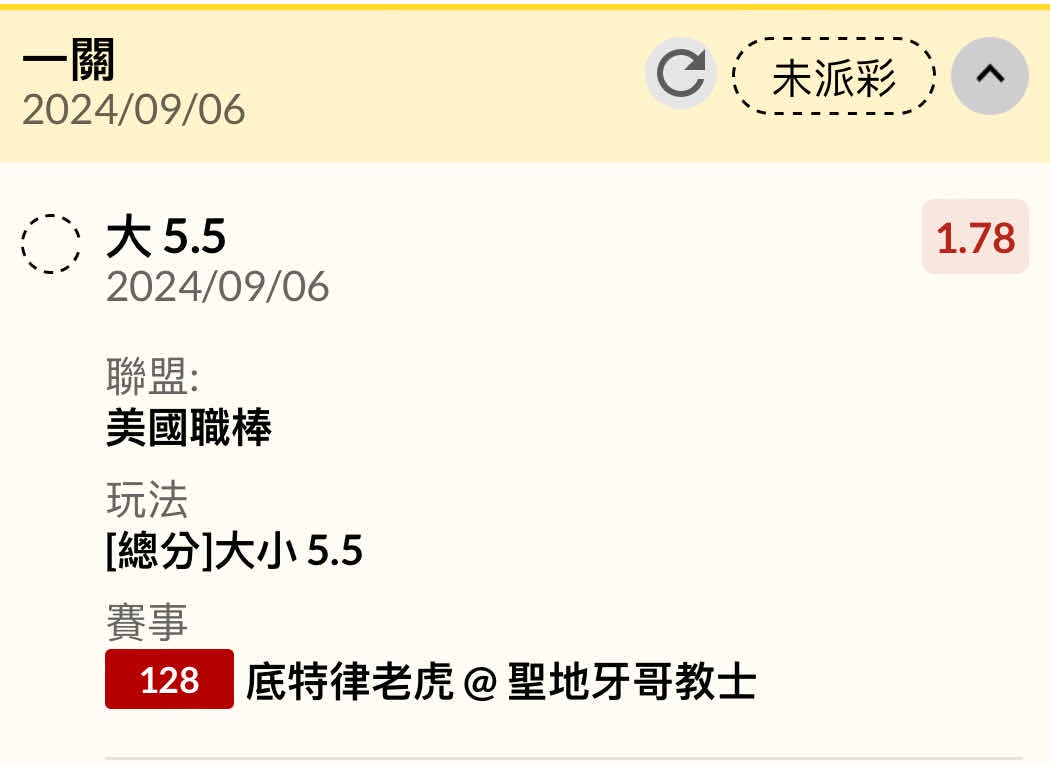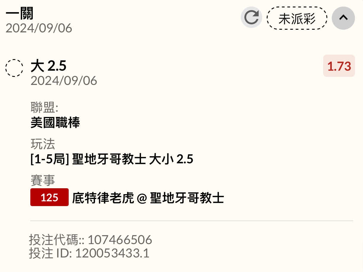 推 pcscu: 賽前我買老虎3.5大 抖 1.200.46.35 09/06 09:00