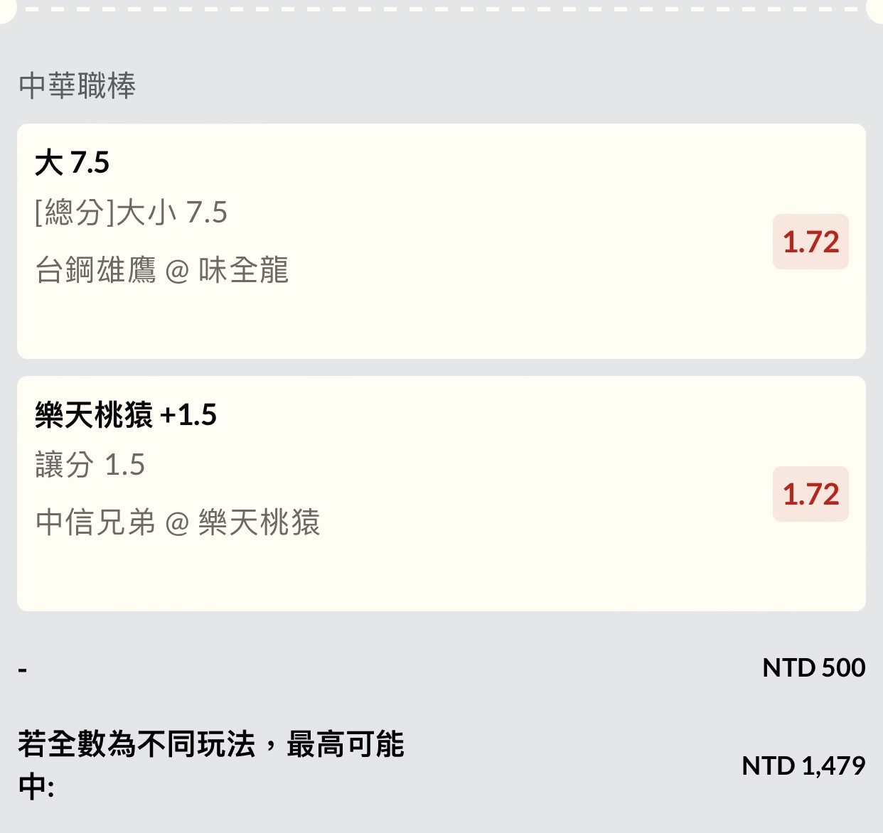 推 mj116: 對了我另外兩場買樂天受讓+富邦不讓(目前 36.236.21.48 09/11 21:38