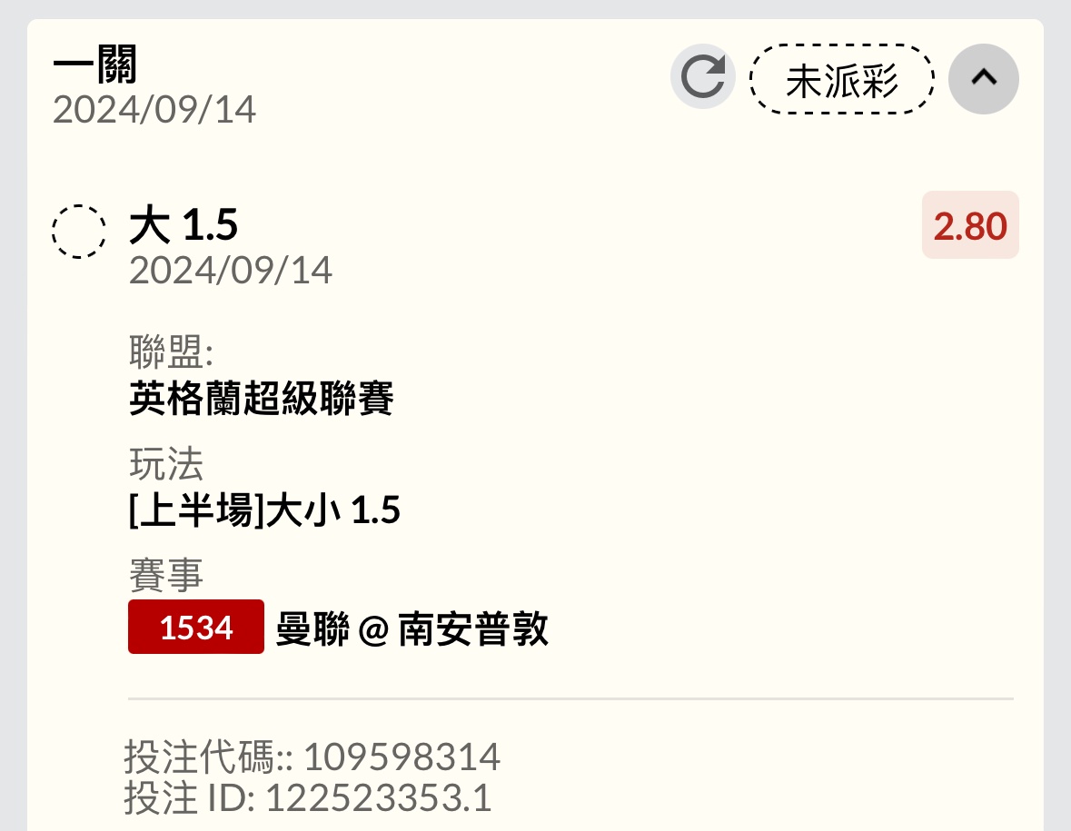 → sean910587: 操你的垃圾曼聯 3.5大倒 2.5小倒 42.72.233.69 09/14 21:28