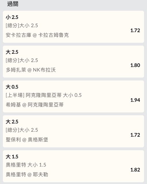 阿克隆陶里亞蒂 上半0.5大1.94(o)