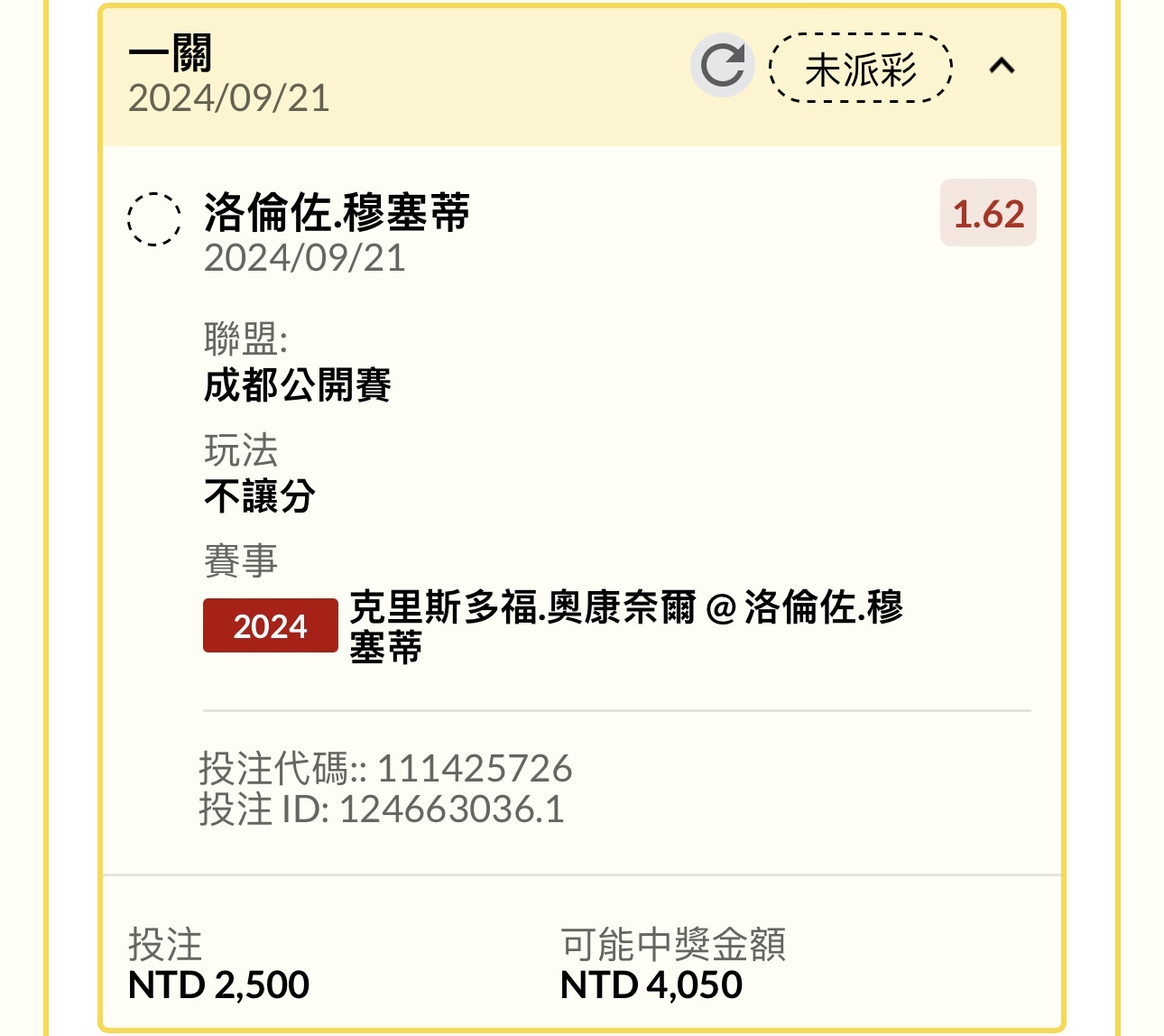 推 Taiwan007: 第一局musetti,1.73,3000223.138.73.33 09/21 16:47