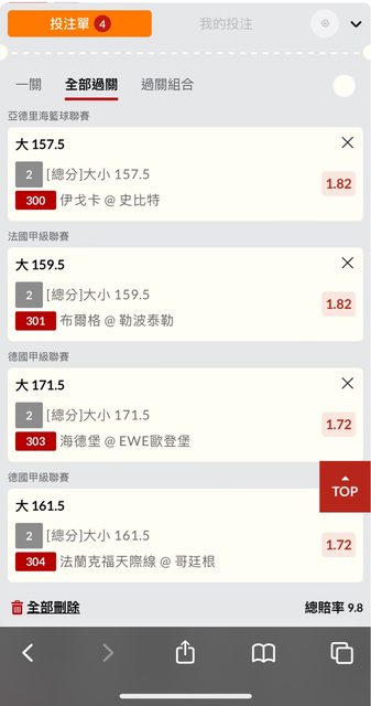死人足球太難玩了,很久沒玩歐洲籃球,剛開季讓分不好猜,大分機率比較高,小串四關