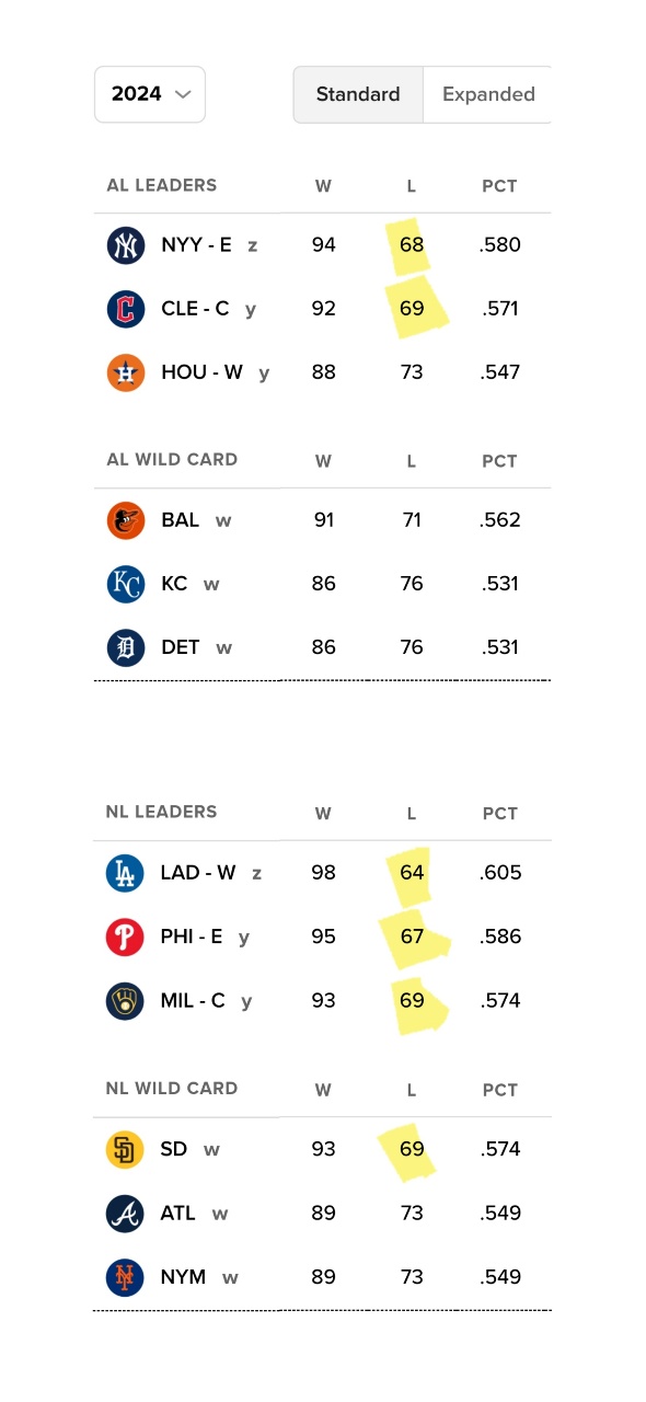 冠軍」包括美聯與國聯的東區、西區、中區冠軍,並依其聯盟戰績分列第1種子、第2種子及