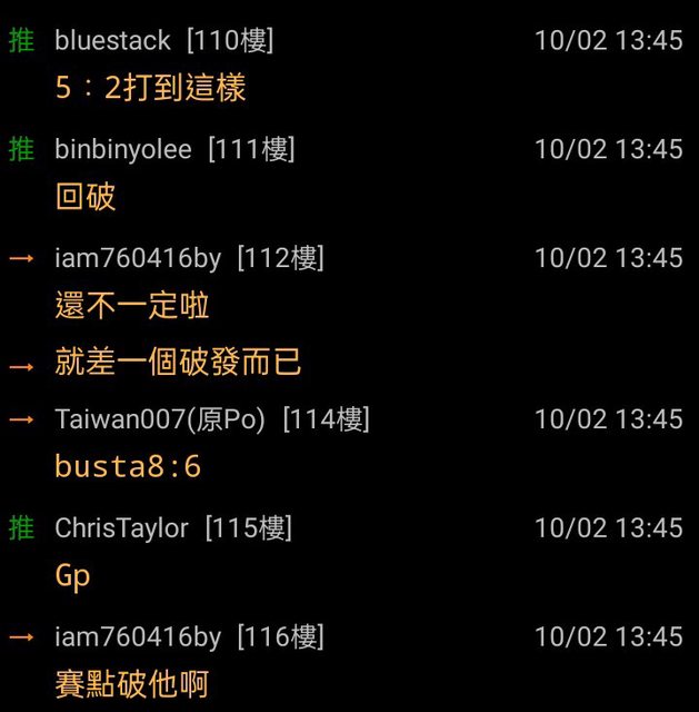 推 Nick87061319: 場中文是他PO的欸 他本文是7:6 沒錯 42.70.132.175 10/02 22:33