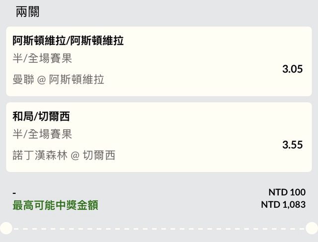 標題[推薦] 足球 英超 半/全 兩場