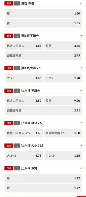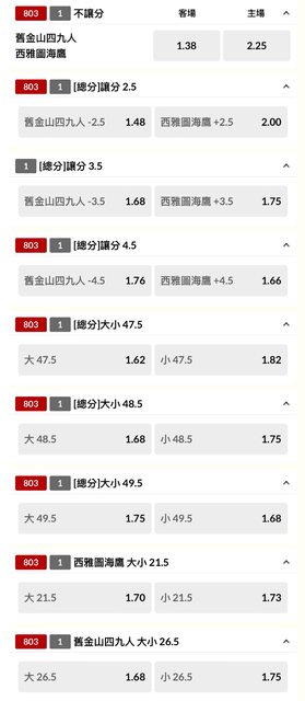 標題[LIVE] NFL 舊金山四九人 @ 西雅圖海鷹 單場