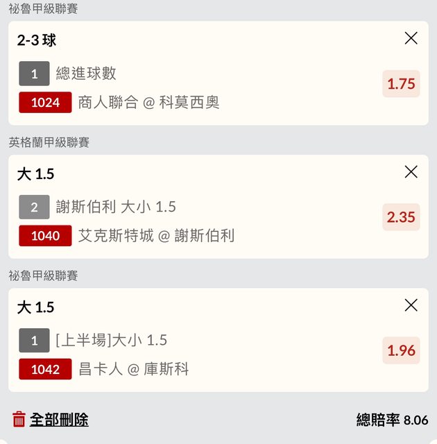 昌卡人/庫斯科 上半1.5大1.96