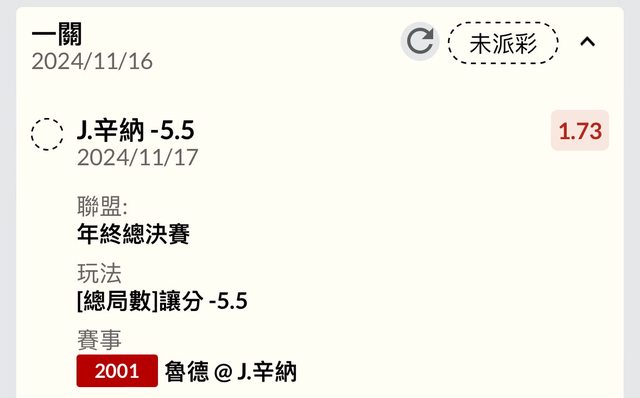 另外再上一個辛納-5.5 1.75 (O)