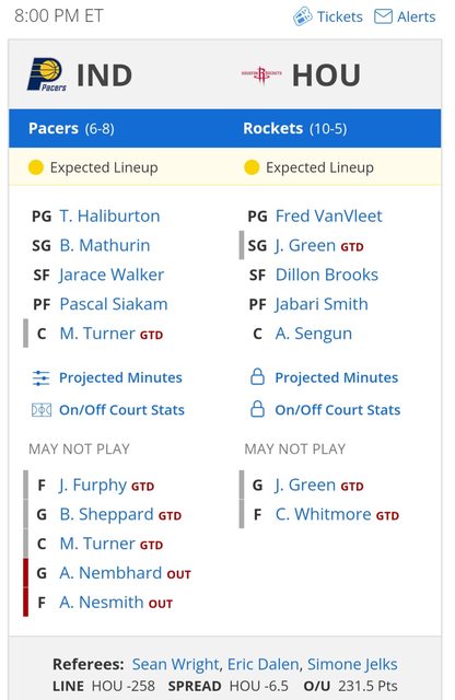 印第安那溜馬 @ 休士頓火箭