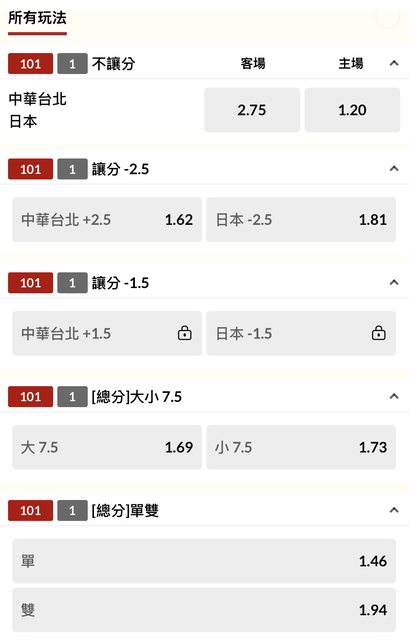 12強晚場台日大戰現已開盤