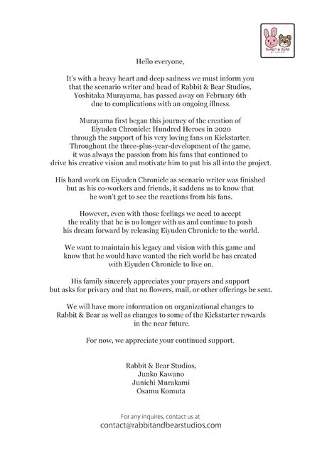 → dukemon: 聽到村山的噩耗真的很驚訝,他這幾個月都一直出來宣傳, 02/14 23:56