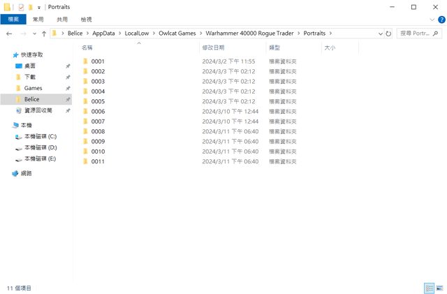 C:\Users\*\AppData\LocalLow\Owlcat Games\Warhammer 40000 Rogue Trader\Portraits