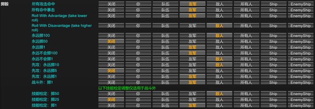 建議調整最下面三個檢定擲骰即可,這跟劇情推進有關,可以稍微調整;戰鬥擲骰能不動