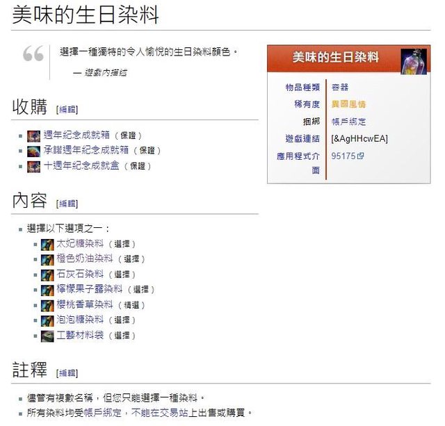 另外目前有取得方式只有9.10.11周年成就才能領的特殊染料