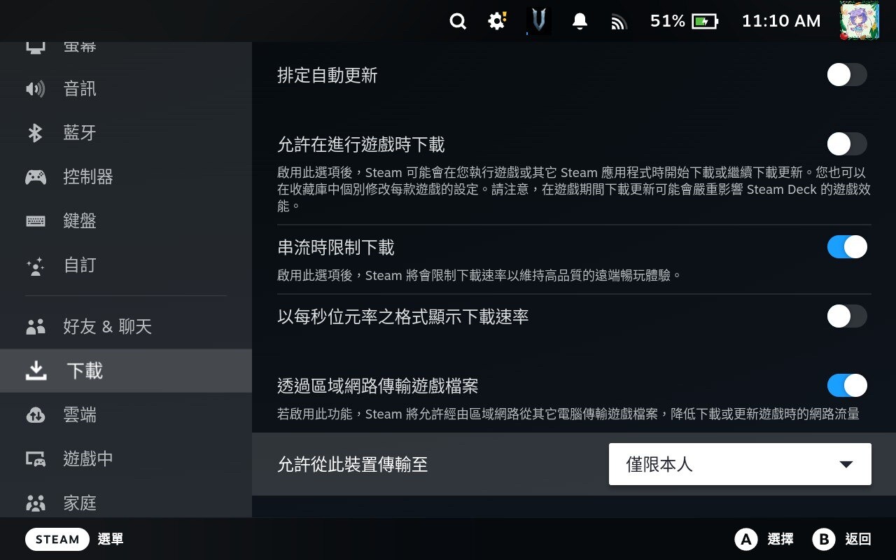 推 manure54321: steam可以設定下載時候的流量 05/26 09:12