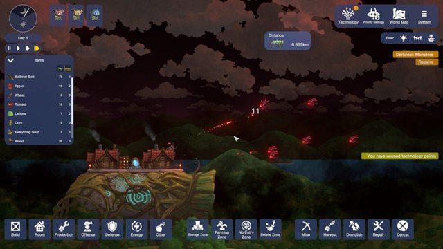 每一張地圖在一定時間之後會啟動黑暗風暴,對所有建築跟生物造成隨機傷害,aka逼你走