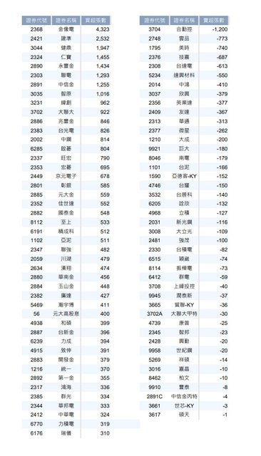 賣超排行