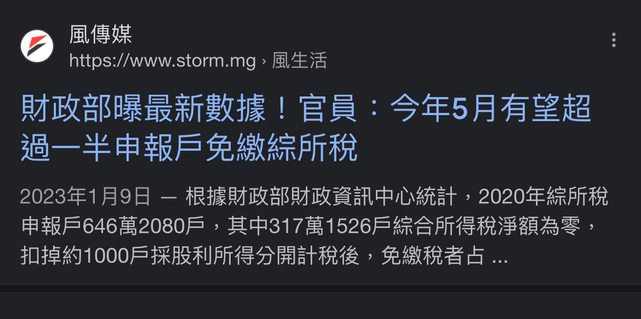 → Kyere88 : 一半人所得不用繳稅,竟然可以吹? 08/19 18:40