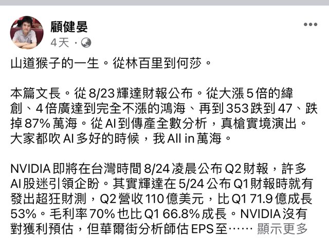 推 PauFrank5566: 這麼賺錢,卻低股價?08/23 22:50