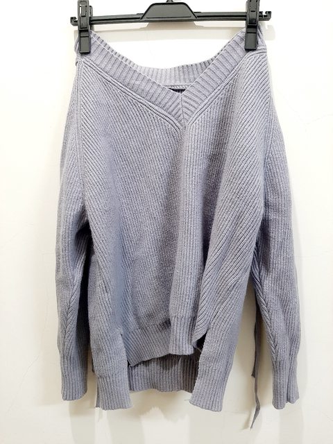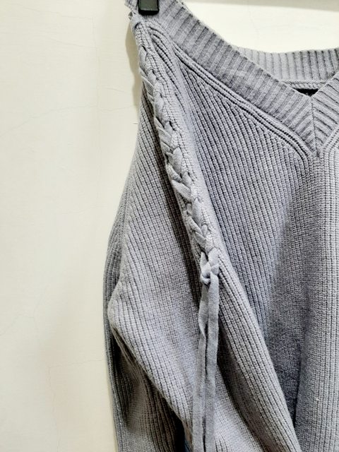 2-1 側綁帶霧紫編織v領毛衣