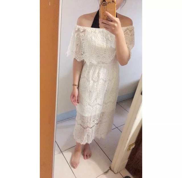 4-4 登記/出遊皆可穿的白色蕾絲洋裝