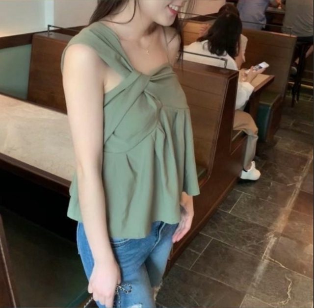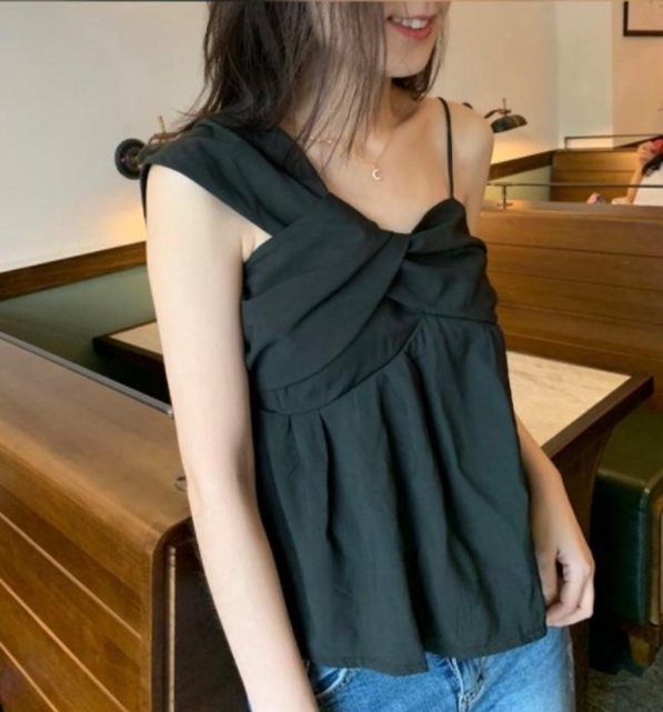 2-7 lovemulli不對稱露肩上衣 黑色
