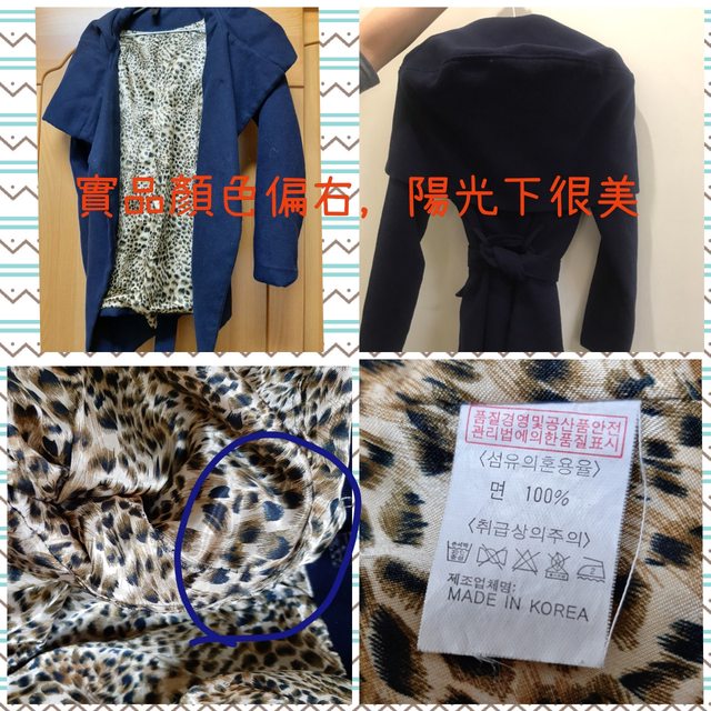 2-9韓製 寶藍豹紋花苞外套/少穿/很美/附同款綁帶/有大帽子包圍/