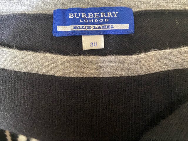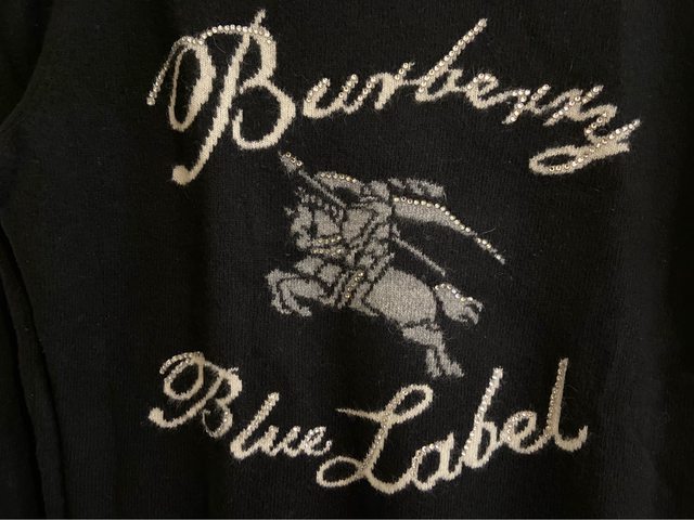 36號 腰33.5 長52.5(公分) 高腰設計 穿上比例很好 九成新 腰帶上有兩個D型釦環 2.Burberry blue label 黑色戰馬水鑽針織毛衣 2280含郵局運費