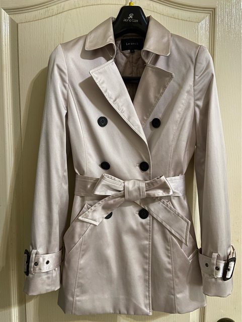 36號 肩36 胸44.5 長72(公分) 穿著少於10次 很新 已送乾洗 毛90% 毛領是兔毛 很柔軟 有別於一般市面 毛領可拆 袖子可反摺 每顆釦子都有加強釦固定 內裡是經典格紋 5.Burberry 玫瑰粉中長風衣 7998含店到店運費(可全家 萊爾富 OK 取貨)