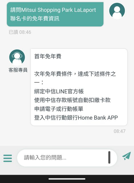 推 redcattery : 年費找中信line的智能客服小c就可以免除了,雖然每 09/13 21:25